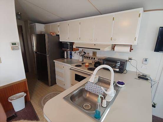 This beautiful home is a 1 bedroom, and 1 bathroom with a great kitchen, perfect living room, and an adorable breakfast nook. The home was renovated a few years ago and is in excellent shape! This home has a huge driveway and a covered carport as well as a large shed with electricity which would be great to work in or store plenty of stuff. The home is in Pleasant Lake RV Resort and is only a stone's throw away from the park's large lake and amenities. The park is gated, clean, and lively! It features tons of amenities from a pool, gym, and clubhouse, to outdoor activities such as community concerts, fishing, boating, and a picnic spot for sunny days. This home and park would be perfect for anyone looking to live the Florida dream on a daily. The park is 55+ and lot rent is $610/month.