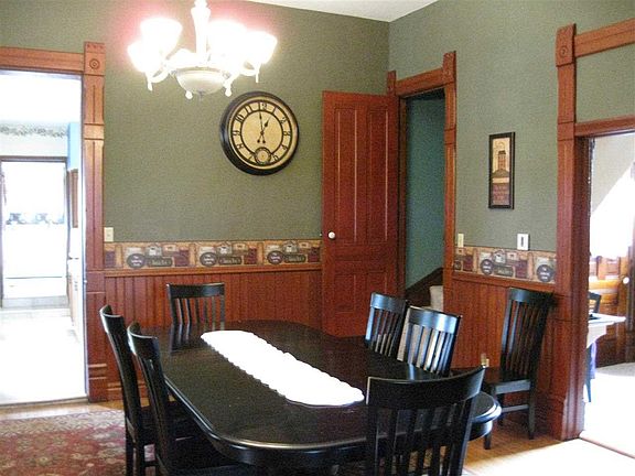 #12279-Charming historical brick home that offers all the natural woodwork, original doors and original fireplace with gas log. Two staircases, four large bedrooms up with 2 baths. Parlor, LR and DR with tall French doors separating LR & DR large eat in kitchen on main level. Commercial hot water heater, new pump in basement. Water softener is a rental.