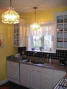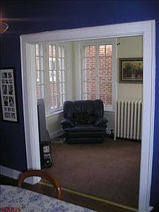 TEN G. Don't miss out on the stately 2.5 story center hall colonial Ames Place home. Excellent value-priced considerably under the current owner's purchase price! Outstanding architectural features include rich hardwood floors, French doors, gorgeous arched leaded glass windows and beautiful millwork. The spacious living room includes a gas fireplace and built-in bookcases flanking the French doors overlooking the front patio, plus French doors opening to a large multi-level deck and the nice sized level back yard. French doors in the formal dining room overlook the front patio as well. A cheerful sun room/den, a half bath, and an updated kitchen with white raised panel cabinets, some glass front cabinets and a built-in planning desk with shelves complete the first floor. The second floor has the master bedroom with a delightful sun-filled sitting room attached, three more BR's plus an updated full bath, while the third floor has two BR's plus a full bath. 2 car garage.Prime location!