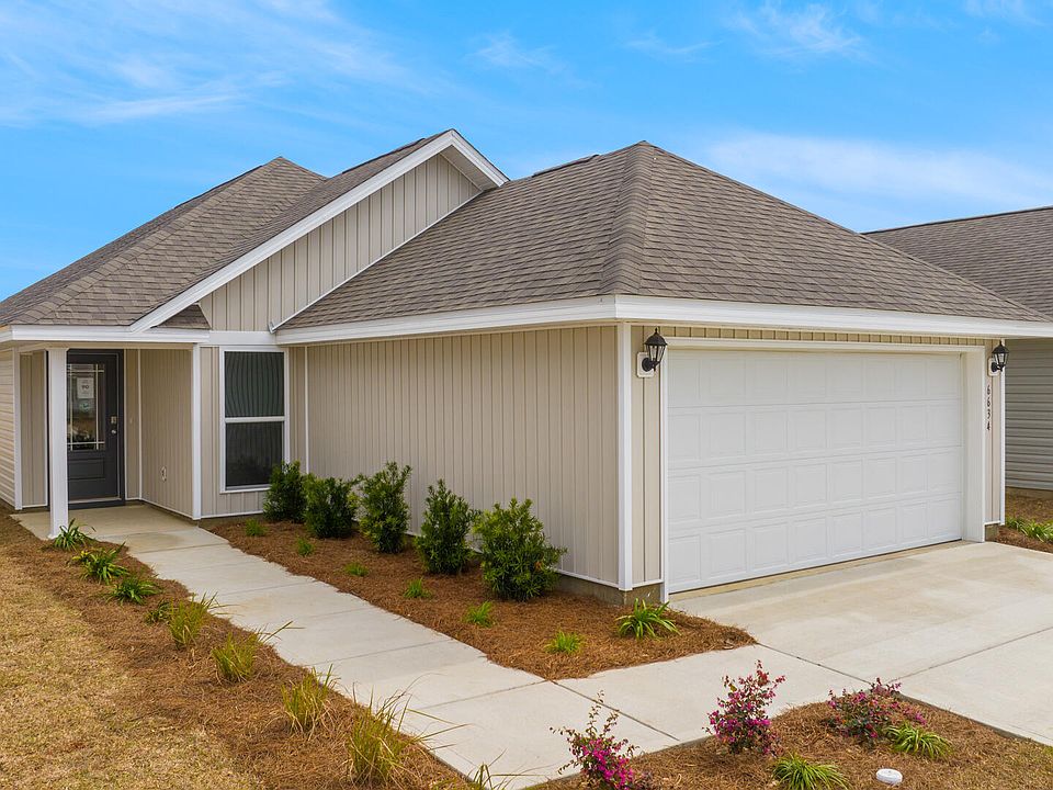 Upon entering the Celeste floorplan you immediately notice the bright entry way afforded by the prairie door. This 3 bedroom 2 bath, 1403 square foot home is an open floorplan. The primary bedroom and bathroom are located off the entry at the front of the home. The primary bathroom has double sink vanity, large shower, and a huge closet. Proceed down the entry hallway passing the laundry area as you enter into the kitchen, dining, and family area. The kitchen offers an island with space for bar seating. On the opposite side of the home from the primary bedroom upfront, there are two spacious secondary bedrooms separated by another bathroom making this home a true split floorplan.