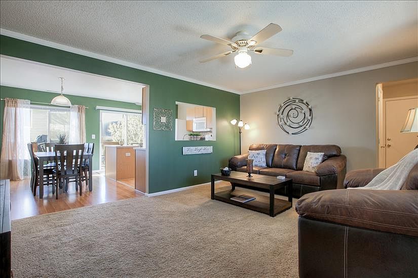 Light, bright, wonderful, FULLY FURNISHED house on Colorado Springs' east side. Dining room/kitchen with island, new granite countertops, contemporary faucets and appliances. Sliding glass door leads out to a private, elevated redwood deck and small, fully-enclosed backyard. King-sized bed in the master, twin in the second bedroom provide sleeping accommodations for three. Large sofa in the living room could sleep a fourth in a pinch. Bathroom also has a brand new granite counter. The home is completely move-in ready. Decorated, furnished, all towels and bed linens, kitchenware, etc., washer/dryer and attached garage. Attached garage with internal entrance means no parking the car then walking to your door in the dark/cold. Walking distance to a wonderful city park with kid's playground. Location makes for an easy commute to downtown, any of the area's military bases, Pueblo, even south Denver is doable. Its a great house, a wonderful location, a very safe quiet, peaceful neighborhood. When comparing to other rents please remember this is a fully furnished, detached single-family dwelling. Thank you. Please call, text or email for more information. No smoking/marijuana/vaping on this property, please. HOA monitors parking and no cars can be parked on the street. Prefer a longer term tenancy but willing to consider all situations.