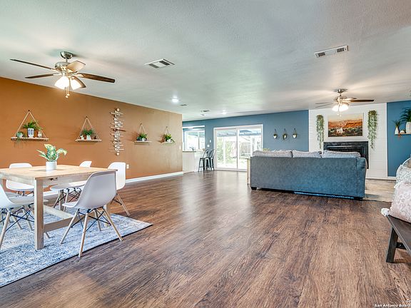 Welcome home! This newly renovated one-story, 4-bedroom, 2-bath beauty offers over 1800 sq. ft of living space and is located in the Old Mill neighborhood within Leon Valley. This well-established neighborhood offers no HOA, giving you the benefit of freedom and autonomy over your beloved property! This home features an attached two-car garage, a large fenced-in yard and sits on a level lot, providing ease of access and potential for various outdoor activities. This combination of features makes the home attractive for flexibility and practicality. Additionally, it boasts an open floor plan, seamlessly connecting the spacious living room, dining area, and kitchen with granite countertops, creating a spacious and airy atmosphere ideal for modern living. The covered patio, functional layout, and inviting living areas with updated wood laminate flooring throughout, makes this residence an excellent opportunity for homeowners seeking comfort and convenience in a very centrally located area of San Antonio. Just minutes to the Medical Center, multiple shopping centers, Loop 410, and Interstate 10. Come see this BEAUTY today before it's too late!