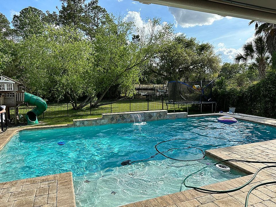 Excellent opportunity to own River Front Paradise at an affordable price. Deep water, unspoiled views from the shores of scenic Trout River. Almost 1/2 acre, backs to nature preserve and dock. Fish, Boat or Jet-ski from your own backyard. Rear fenced for kids and pets, open and inviting floor plan. Tile in wet areas, large eat-in kitchen features cherry cabinets, wine rack and appliances convey. Kitchen, Great Room and Master Bedroom offer stunning views. Covered patio creates a shady spot for grilling or outdoor dining. Enjoy Florida lifestyle at it's best for the best price available.