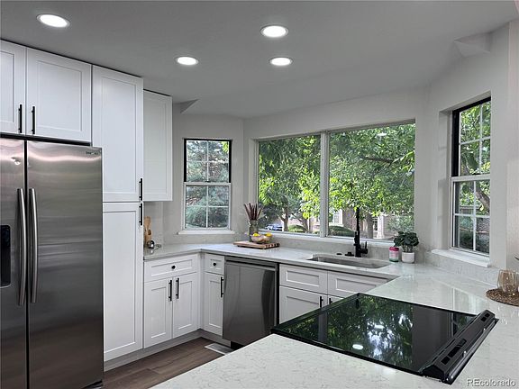 Back on the market and waiting for you! Modern and elegant 3-bedroom townhome - lives like a house, but better! Beautiful grounds are maintained for you! Nestled in a quiet, peaceful area, this residence is ideal for those who value tranquility and convenience. The light and bright floor plan features vaulted ceilings, skylight, separate dining and living areas, and an office complemented by beautiful wood grain laminate flooring throughout most of the main level. A large finished basement with new carpet and built-in storage shelving provides additional space for storage, hobbies, or future expansion. The main bedroom suite boasts vaulted ceilings, ceiling fan, a walk-in closet, 3/4 bath and dual sinks. Two other nicely sized bedrooms and a full bathroom complete the upper level. The attached 2-car garage offers secure parking and easy access to your home. The covered front porch and larger fenced patio area are perfect for outdoor entertaining, planter gardening, or relaxing in your private sanctuary. Of course, if you're a dog lover, this yard is perfect! Situated in a quiet, friendly community, this townhouse strikes the perfect balance of seclusion and accessibility to local amenities. Don't miss out on the opportunity to make this charming townhouse your new home, where comfort, privacy, and convenience come together seamlessly. Remodeled, near schools, parks, shopping, DTC, I-25, and all that the Colorado Front Range has to offer!