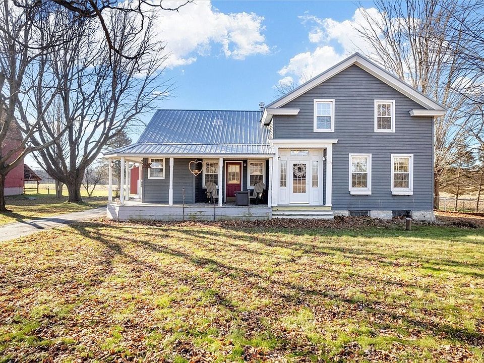 This 1842 farmhouse property with 2.3 acres and VVS Schools is one you won't want to miss! Enter through the 1 car attached garage to the large mud room with pantry and 1st floor laundry for your convenience. The updated kitchen with vaulted ceiling & skylights, newer pellet stove and/or wood stove for supplemental heat, and sliding glass doors make it extra bright, spacious, and cozy for entertaining. A first floor full bathroom make the floor plan possibilities endless.. Don't have a need for the formal dining room? Convert it to an awesome first floor master suite and use the small first floor office as a walk in closet! Head through the living room to the entry hall and up the stairwell loaded with character - you'll find 2 bedrooms and a recently renovated master with a full bath. The 38' x 80' pole barn is perfect for storage, and includes a finished space with a heating unit. The 1915 dairy barn is full of potential and ready for restoration, or use it for more storage. 1 year old roof, gorgeous hardwoods, thermo windows, UV filtration system, ADT security system, invisible dog fence, dry basement, & the large yard surrounded by farmland make this a great place to call home.