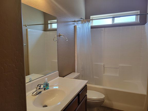 Situated in the highly desirable and amenity rich Granville community, this immaculately maintained home boasts outstanding curb appeal, long distance mountain views, and single level living! The interior features an open and spacious split bedroom great room concept floor plan, vaulted ceilings, raised panel interior doors, and neutral paint scheme. The great room showcases soaring vaulted ceilings, gas fireplace, built in recessed media niches, and decorative plant shelves. The elegant kitchen is well appointed with a generously sized corner walk in pantry, sleek white appliance package including a four burner gas range with microwave above, and easy care laminate countertops. The master suite is spacious in size featuring a large walk in closet and vaulted ceiling. The master bathroom contains a raised height dual vanity, walk in shower and comfort height toilet. The guest bedrooms are generous in size and equipped with ceiling fans and plantation shutters. The full guest bathroom contains a tub/shower combo, and a convenient linen closet just outside. The laundry room serves as a mudroom coming in off the garage and provides ample storage with built in cabinetry and a deep wash basin. The spacious 2.5 car garage features insulated overhead doors, and lots of storage space with shelving going across the top, there is also a door providing direct access to the back patio. The private backyard is beautifully landscaped with mature deciduous and pine trees and features a meandering flagstone walkway leading out to a flagstone patio with pergola. The back of the yard is terraced with native species and cactus and contains a small shed. Additional features include: 50 gallon hot water heater with recirculating pump and exterior sun screens on the windows.