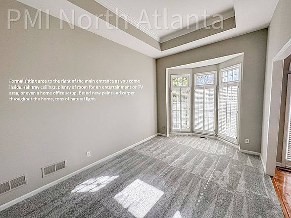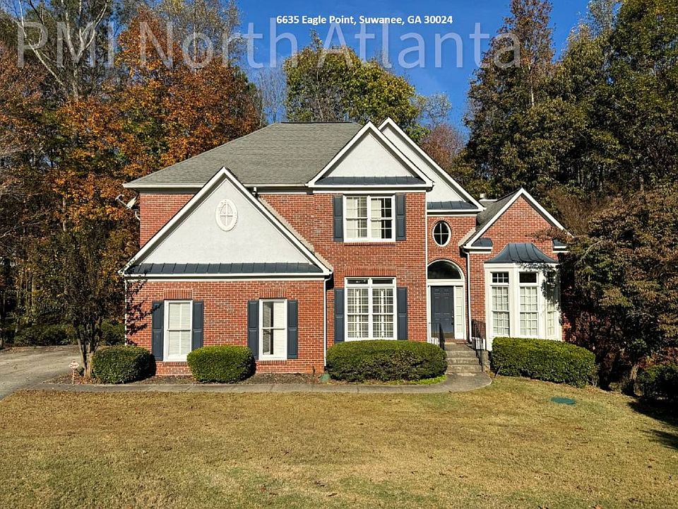Located in the heart of one of Forsyth County's most sought-after school districts-Johns Creek Elementary, Riverwatch Middle and Lambert High-this beautifully updated 4-bedroom, 3-bathroom home offers 2,683 square feet in a quiet cul-de-sac at 6635 Eagle Point in Suwanee. We've just completed major renovations for summer 2025, including all-new carpet, full interior repaint and a brand-new multi-level deck off both the kitchen and basement. The main level features a full bedroom and bath ideal for guests or office space, while the upstairs includes a Jack & Jill bathroom between two secondary bedrooms. The home also has an unfinished basement offering excellent storage or future living space. Located just off McGinnis Ferry and Highway 141, the home is part of a well-maintained swim/tennis community with clubhouse, pool and lighted courts. Application fee is $69 per adult 18 and older. Applicants must earn 3x the monthly rent with verifiable income and strong rental and financial history. Dishwasher, Disposal, Gas Stove, Granite Countertops, Ice Maker, Island, Microwave, Oven, Pantry, Refrigerator, Carpet, Concrete, Hardwood, Laminate, Linoleum, Attic, Family Room, Great Room, Laundry Room, Living Room, Primary Bath, Primary Bedroom, Unfinished Basement, Air Conditioning, Blinds, Ceiling Fan, Dryer, Fireplace, Garage, Shutters, Storage, Vaulted Ceilings, Walk In Closet(s), Washer, Deck / Balcony, Community Pool & Pet Friendly.