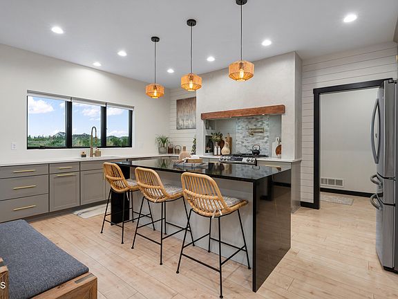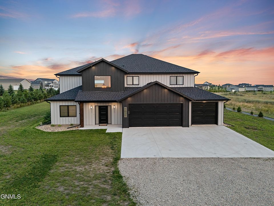 Welcome home to this stunning custom-built home located in NE Bismarck. This home was built in 2022 by Pinnacle Homes. You will be impressed the second you walk in the front door. Venture inside to discover soaring ceilings and abundance of windows, allowing for plenty of natural light and great views. The living room features a beautiful ship lap gas fireplace that extends to the second level of the home. This living room has a ''WOW factor'' in every direction you look. The kitchen is every chef's dream. It features a beautiful Cambria waterfall island, custom cabinets, Venetian plaster hood with gas range, pot filler, and custom backsplash. There is a walk-in pantry, wine cellar room along with a huge storage room off the garage. Also, on the main floor features a beautiful ½ bathroom styled with artistic wallpaper, dark green accent colors and sleek light fixtures. There is a main floor office located off the front entrance with a beautiful black barn door. Heading up stairs, you are sure to appreciate the sleek staircase, that allows you to overlook the grand living room. The primary bathroom features a beautiful soaker tub with west-facing picture to enjoy watching the sunset while taking a relaxing bubble bath. You will love the one-of-kind black-tile walk-in shower. There are dual sinks with gold faucets and quartz countertops along with a walk-in closet with plenty of storage. There are 2 additional bedrooms, a full bathroom and laundry room. The 3-stall garage is 952 sq ft and features a gas heater, hot/cold water, floor drain and 240V plus for future electric car or hot tub.