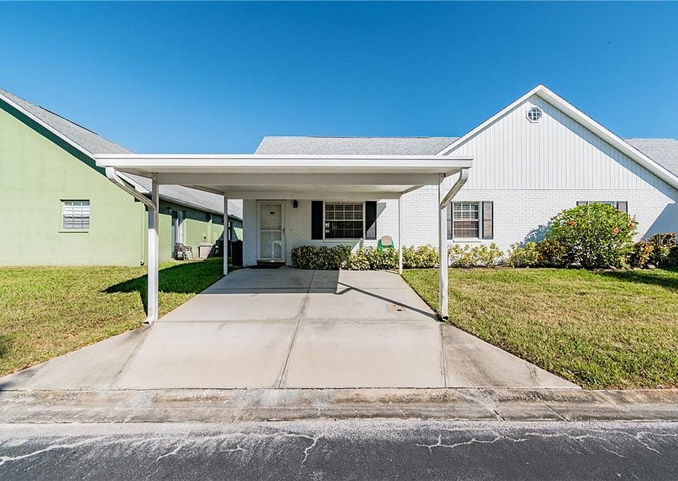BACKUP OFFERS REQUESTED! WELCOME TO YOUR TROPICAL PARADISE at 6635 Sunlit Ln, New Port Richey in the ACTIVE 55+ community of The Wilds. This REMODELED 2 bed, 2 bath CORNER UNIT with SPECTACULAR finishes is ready for the new owner to enjoy. As you step inside, you'll LOVE the SOARING ceilings & SUNSHINE streaming through the large windows ILLUMINATING the interior. Key upgrades include FRESH interior neutral paint, crown molding throughout the home, PLUSH carpet in bedrooms, RICH laminate floors in living & dining rooms & ceramic tiles in kitchen & baths. The AMAZING kitchen has stainless steel appliances, tile backsplash, CRISP white cabinets with nickel-finish hardware, CLASSIC black granite counters with SHIMMER mica chips & deep sink with faucet. The patio & side yard is accessible through sliders from the kitchen. The dining room features a BEAUTIFUL chandelier while the SPACIOUS living room can easily accommodate your furniture. The coastal blue master bedroom has a 6x6 walk-in closet & private en-suite bath with step-in shower. It's lovely to have a 2nd bed with the full guest bath with tub/shower combo nearby. The laundry closet consists of plentiful built-in shelves. This unit has a RARE DOUBLE CARPORT parking. Community amenities are pool, recreation activities, exterior maintenance, trash & cable while keeping monthly fees low. This MAGNIFICENT community is truly a hidden GEM centrally located near beaches, shopping, restaurants, tourist attractions & more. MAKE THIS YOUR FUTURE HOME!