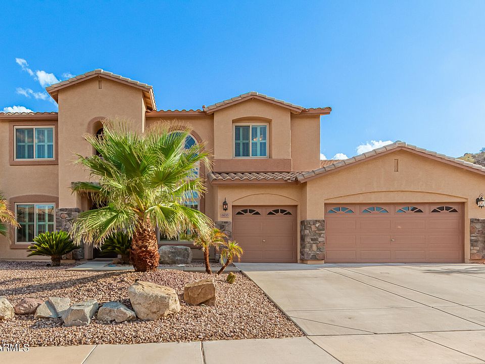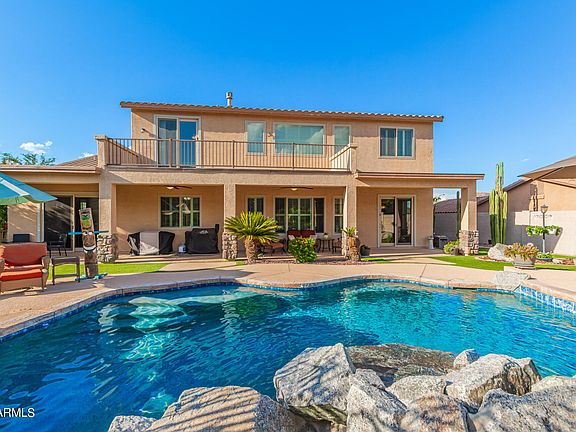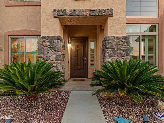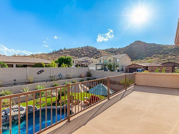 Welcome to your Arizona dream home! This magnificent property has four bedrooms plus a loft and an office, 2.5 bathrooms, and a generous 3,613 square feet of living space. Nestled on a corner lot with breathtaking mountain views, this residence offers the perfect blend of comfort and luxury. As you step inside, you'll be immediately impressed by the attention to detail and upgrades that make this home truly special. Plantation shutters adorn the windows, allowing you to control the natural light streaming in. The upgraded porcelain tile wood plank flooring adds a touch of elegance to the interior, creating a warm and inviting atmosphere. For those who love to entertain, the butler's pantry and walk-in pantry provide ample storage and prep space, while the formal dining room sets the stage for memorable gatherings with family and friends. The downstairs primary bedroom with en suite and walk in closet offers a private retreat complete with sliding glass door to the stunning backyard. There's an additional office on the main level, perfect for those who work from home or desire a quiet space for productivity. Upstairs, you'll find a versatile loft space that can be used as a game room, home theater, or whatever suits your lifestyle. Step outside onto the balcony to soak in the stunning mountain views. Three bedrooms and a well-appointed bathroom complete the upstairs living spaces, providing plenty of room for family and guests. The outdoor area is a true oasis, featuring a sparkling pool for refreshing swims on hot Arizona days. The extended covered patio is ideal for alfresco dining and entertaining, and the RV gate offers convenient access to the backyard. This Arizona gem offers a perfect blend of space, style, and outdoor living. Don't miss your chance to make this exceptional property your forever home.