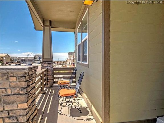 Beautiful Ranch home with amazing views! Watch the sunrise from your covered front porch. This home has great natural light, breath-taking views and a wonderful open floor plan. The main level has a bedroom and bath, a flex room currently used as an office but could easily be used as a formal dining room, an enormous kitchen with double oven, island with breakfast bar, pantry and work station, walk-out dining nook, spacious living room with a wall of windows and gas fireplace and the Master Retreat. The Lower level has a Massive Family/Recreation room, a third bedroom, full bath and a huge unfinished storage area that could easily be converted to a workout room, craft room, or home theater. There is even room to add 2 walls in the Family/rec room to make a 4th bedroom. The back of the home faces the mountains and there is a stunning view of Pikes Peak. The back porch is covered so you can sit and enjoy the sunsets year round. Enjoy the Community Ranch House, Charter School and New Water Park! Convenient to Peterson AFB, Schriever AFB, Fort Carson and the Air Force Academy.