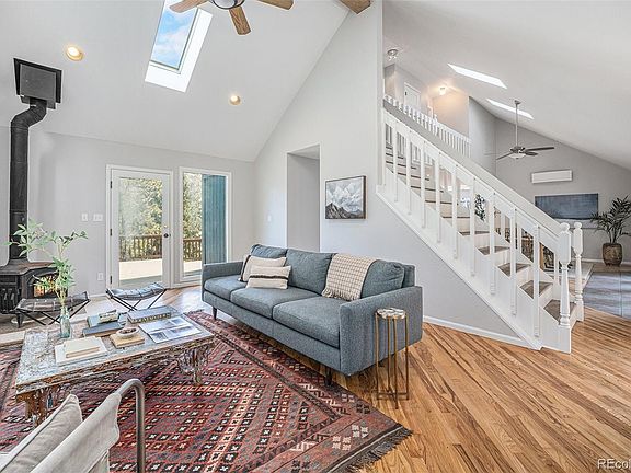 Modern mountain charm, fresh updates, and 1.35 acres of peace and possibility — all just a short drive from Denver. This cozy home in Morrison features vaulted ceilings, a wood-burning fireplace and stunning tree-filled views from every window. The flexible and functional floor plan spans three levels, with 3 bedrooms, 3 bathrooms, a dedicated office and multiple outdoor decks to enjoy the Colorado sunshine. Hardwood floors were just refinished and the main + upper levels freshly painted, so it’s move-in ready while still leaving room for you to make it your own. The kitchen and main-level bath were recently renovated, and the home also features a water filtration system, sky lights and 3-zone mini-split AC and heat pump. You'll love the quiet, mountain setting with the big fenced back yard, Evergreen trees all around, and zoning that allows for chickens, goats, and even horses. There’s a 2-car attached garage with extra storage, plus a paved circular driveway with plenty of parking. Located just 5 minutes from US 285, 15 minutes from Red Rocks and Downtown Morrison, and 35 minutes to Denver, it’s the perfect mix of peaceful mountain living with easy access to the city.