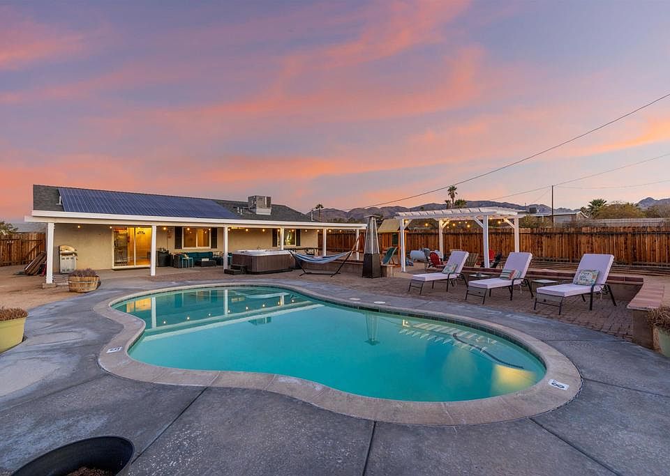 Welcome to Your Desert Oasis!?Discover paradise in this beautifully maintained, newer home nestled in the highly desirable Indian Cove neighborhood. This 3-bedroom, 2-bath gem offers the perfect blend of comfort and luxury featuring a sparkling saltwater pool, relaxing jacuzzi, and a private fenced backyard designed for serenity and entertaining. Enjoy sun-filled days under the covered patio or unwind beneath the elegant gazebo while taking in stunning desert views. Inside, the home boasts a modern chef’s kitchen with granite countertops and stainless steel appliances, sleek tile flooring, and central air & heat for year-round comfort. The finished garage adds extra functionality, and the home’s location just minutes from the base, offers convenience without sacrificing peace and privacy. This is more than a home, it's your personal retreat in the desert. Come experience it for yourself, your clients will be amazed!