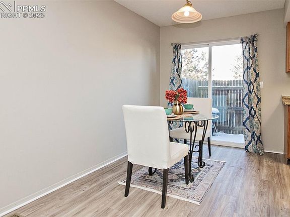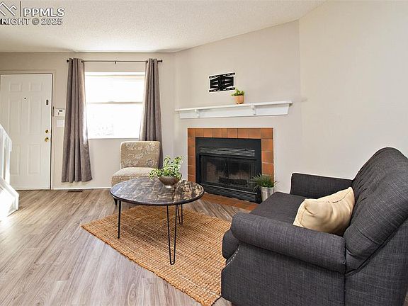 Nestled within Eaglecrest Townhome community, this charming 2-bedroom, 1.5-bathroom residence offers a golden opportunity for homeowners and savvy investors alike. The entire residence has been freshly painted, providing a modern and cohesive aesthetic. ALL CARPET upstairs replaced and the WHOLE MAIN FLOOR replaced VINYL!! The main level living room with wood burning fireplace, kitchen (appliances included!) and dining room – which walks-out to a lovely, tree-covered & fenced patio with additional storage. With two generously sized bedrooms with the master bedroom having TWO extra-deep closets. This home provides comfort and convenience for you and your loved ones. Assigned parking is right at your doorstep, and additional visitor parking is conveniently located out front for guests. With a prime location just off the Powers Corridor, it offers convenience to schools, restaurants, shops, Peterson AFB and an easy commute to Ft. Carson. This property is not just a place to live; it's an investment in your future!