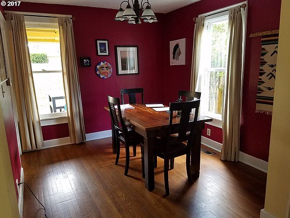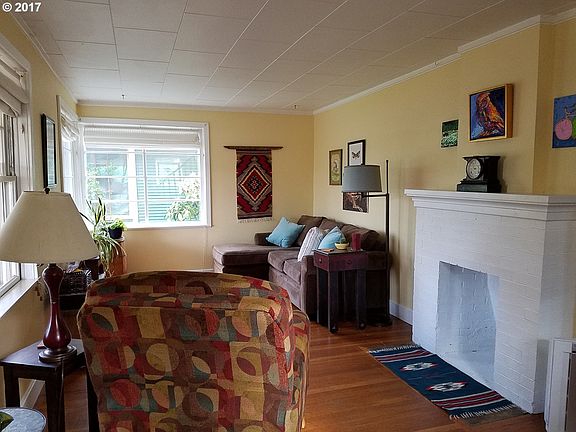 VINTAGE FARMHOUSE with full front porch, fenced yard, garden, shed, deck. Hardwoods, upgrades to plumbing, electrical and bath plus more. 2 bedrooms up plus bonus up. Utility shared with bathroom. All appliances stay. Great location to Mt Scott park, Woodstock stores, coffee shops, New Seasons. FIREPLACE HAS NO damper. Exclude Lending Library in front.