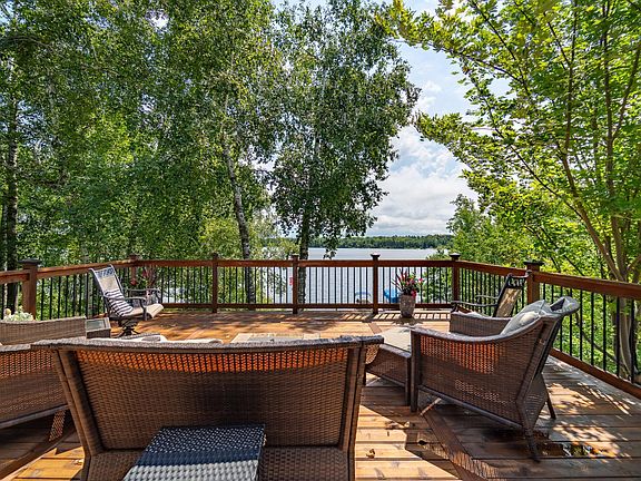 Beautifully maintained Big Bass Lake 3BR/3BA home with tremendous views and a great swimming, dock, and beach area. This location is very close to the paved Paul Bunyan Trail, Lake Bemidji State Park and the Bemidji Town and Country Club. This property has had many updates including new kitchen, siding, windows, roof, master bath, deck/patio, flooring, water softener and more! The 3-stall garage is heated with an additional paved parking area for guests and equipment. The 14x24 lakeside storage shed gives ample room for all your water toys and equipment. The full underground sprinkler system keeps the manicured lawn beautiful! This home features a private bath for every bedroom and is a wonderful home for entertaining guests. Relax on the awesome deck that overlooks beautiful Big Bass Lake.