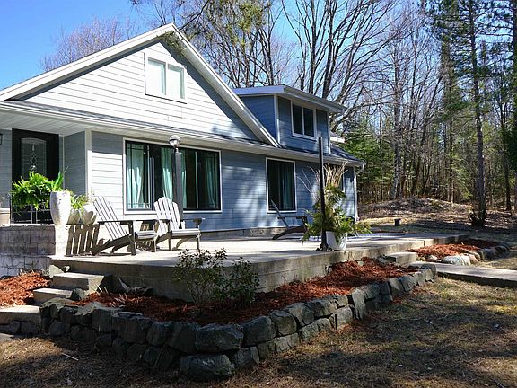 Nestled in the woods on 10 acres of high land is this rustic yet modern home, featuring an open floor plan with plenty of natural light, main level bedroom and main level laundry, a custom gourmet kitchen combined with a cozy dining room, a spa like bathroom with a soak tub and a walk-in shower, and marble floors. The upstairs has a large bedroom, an office space, and a loft. The walkout basement has an egress window, a storage room, and a boiler room.