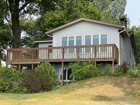 Sunset views off the large waterfront deck overlooking the all-sport, 68 acre North Lake could be the scenery from your new home! Launch your jetski's, fishing boat or pontoon without traveling as you are located right next to the boat launch! This 3 bed, 2 bath home in the Reeths-Puffer school district features large decks in front & back, a covered patio out the walkout basement & a sandy beach! Enjoy the fresh lake breeze during the day and cozy up in front of the gorgeous flag stone fireplace in the evening. A family room in the lower level offers space for the family to spread out. A 2 stall detached garage across the road on a separate lot included with this listing offers plenty of parking. Recent renovations include a nearly $20,000 bathroom makeover with walk-in jetted bathtub.