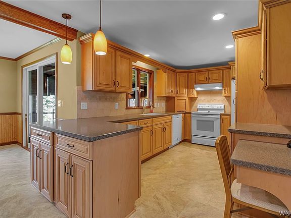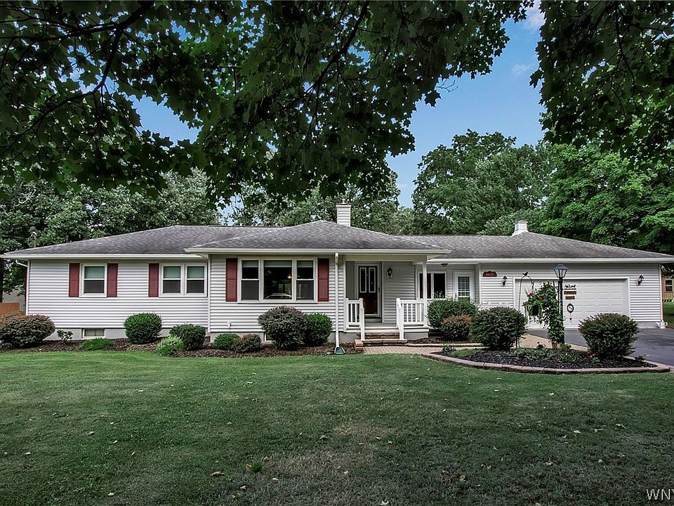 Welcome to this stunning ranch house in Elba, NY. This home has so much to offer and is perfect for those looking for a peaceful and comfortable space in a great location. Enjoy cooking in the brand new kitchen with ample storage and counter space. First floor laundry capability adds convenience to daily chores and with two full bathrooms, there is ample space for the family. Another great feature is the bar in the basement. Perfect for hanging out. There is also a laundry room off of the bar room if you prefer to have your laundry downstairs. A brand new panel and sub panel box were just installed, ensuring safety and efficiency for the home. With a spacious three season room, you are able to relax and enjoy the outdoors while still being in a closed space. The garage has a work bench and lots of storage along with a heater. Making it a great place for projects no matter the season. Enjoy the landscaping from the front porch or back patio and store your supplies in the shed. This house truly has everything you would need for comfortable living in a serene setting.
