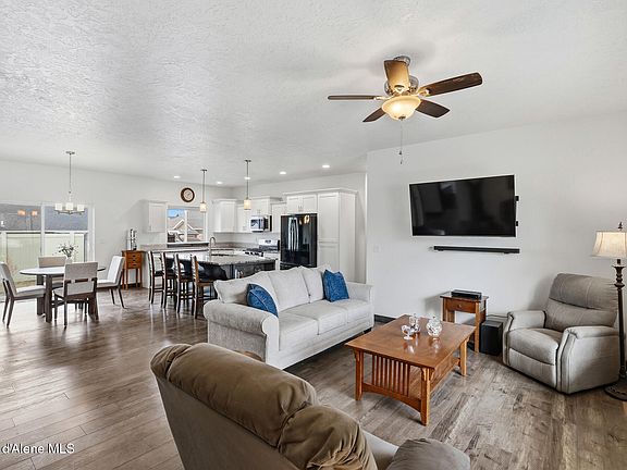This beautifully done 3bd 2ba single level home will be your delight! You will love the oversized primary suite with the beautiful walk-in tile shower and granite countertops throughout. The covered patio will be perfect for those summer evenings with views of the Rathdrum Mountain. Highly desired 3 car garage in an easily accessible neighborhood! If you've been looking to downsize or the perfect single level, this is the one you've been looking for!