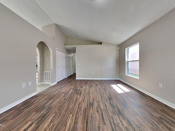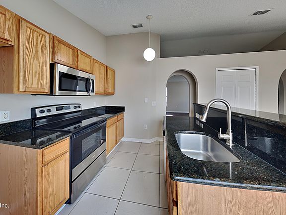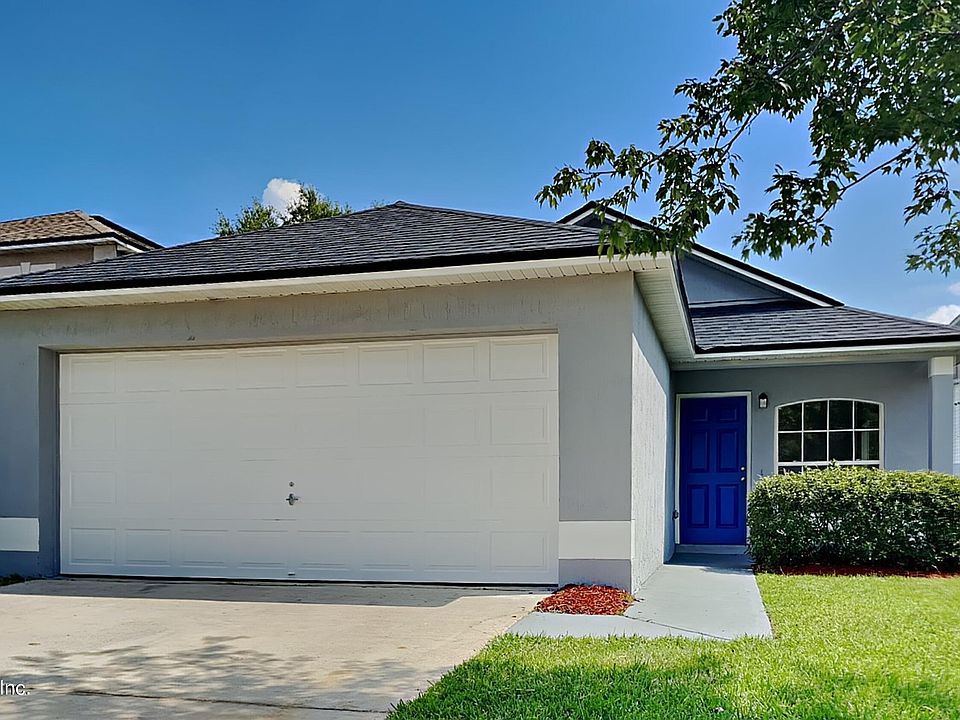 This Gentle woods concrete block gem is freshly painted inside and outside and ready for move-in at closing. New water heater 2023, HVAC 2021, Roof and flashing 2020. Inside you'll find a generous living room with easy-care wood-look flooring, and tiled dining area and kitchen. Granite countertops, deep basin sink, pull-out faucet, new stainless steel range/microwave/dishwasher combo, and bar seating at the island are sure to please the chef. The owners suite boasts a full bath and double closet. 2 more bedrooms, hall bathroom, and inside laundry closet complete the interior of this home. Enjoy time in the fenced yard, with sliding doors and open patios at the dining area and owners suite. Located within minutes of shopping, dining, entertainment, NAS Jax, and other popular work centers.