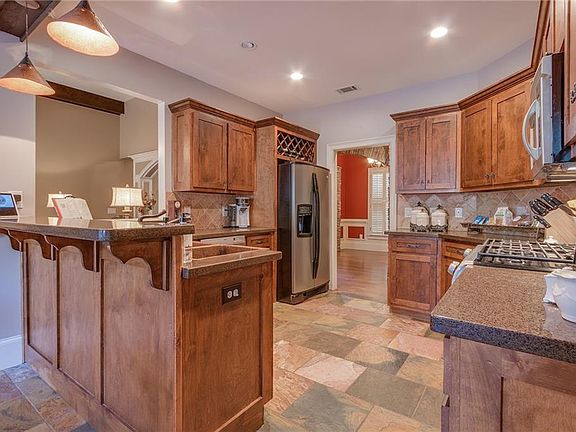 - Kitchen Features: Breakfast Bar, Cabinets Stain, Eat-in Kitchen, View to Family Room, Stone Counters