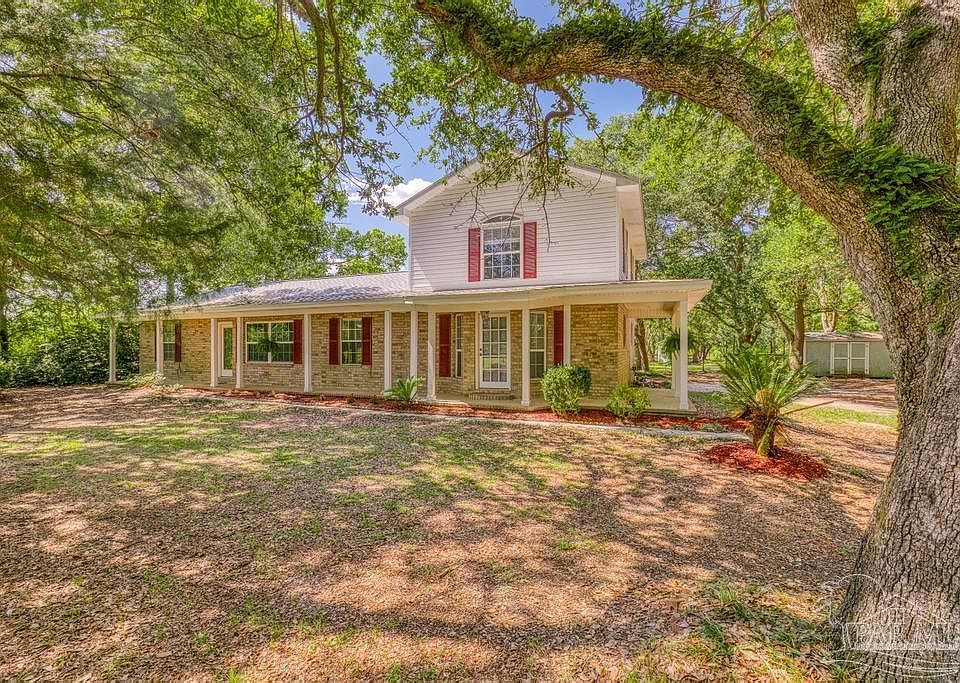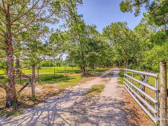 “Tranquil Oasis on 5 Acres: Custom-Built 5 Bed/3 Bath Home with Stocked Pond and Horse Barn” Nestled on 5 private acres, this remarkable property offers a serene escape from the hustle and bustle of life. As you enter the private gated entrance you’ll be greeted by the picturesque setting and the wonderful blend of nature and tranquility. Imagine fishing in your own stocked pond! This property has it all! You are welcomed by the expansive covered front porch that invites you to relax and take in the views. Stepping inside you will find an Open Split Floor Plan with the heart of the home featuring a large island as the center of the living, kitchen, and dining area…making this the perfect place to entertain your family and friends. The Gourmet Kitchen is a chefs dream. The kitchen was remodeled in 2015 with an abundance of new cabinets, soft close drawers, a breakfast bar, stainless appliances, kitchen Island, a Beautiful tile backsplash, and a farmhouse sink. There are two pantries that offer plenty of storage that completes this kitchen. The dining area features a built-in china cabinet. Three guest bedrooms and two full baths are located on the main level as well as the master suite plus an additional bedroom and bonus room are located upstairs. The master bath was remodeled in 2023, with a beautiful tile shower/ floors, and large vanity with granite counter top. The large master suit has a walk in closet with custom shelves and a separate private entrance. Stepping outside there are Two covered patios off the back of the home, that invite you to enjoy the sunsets and the soothing sounds of nature. The large Barn with covered lean-to is perfect for your Horses and farm animals. The property also features several cross fenced areas. There are three storage buildings to offer additional storage and plenty of room to plant a garden. Just a short distance to I-10 for easy commuting and within viewing distance of Blackwater Bay. Schedule an appt. today to view!