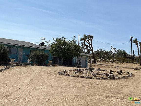 Your True MID CENTURY in gorgeous South Joshua Tree; just 10 minutes from the park! Sitting on 1.25 acres with views that are stunning. This estate sale is your opportunity to get in on the Joshua Tree vibe! This town is full of art galleries, restaurants, with the park entrance so close so you can hike, and enjoy this majestic place! Night skies are out of this world! This sweet mid century home has 3 bdrms, 2 bath, 2 1/2 car garage, fencing and just needs love. The family trust is selling. These are rare finds, do not miss out! Located just south of Hwy 62, up past the Joshua Tree theatre area so you can even walk to the local farmers markets, and restaurants from here! The large lot gives you privacy galore! Would be amazing retirement home, art gallery or perfect AirBNB! Home sold as.