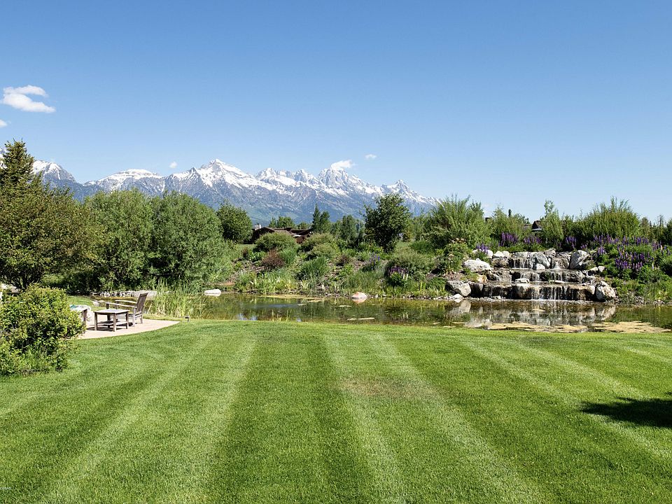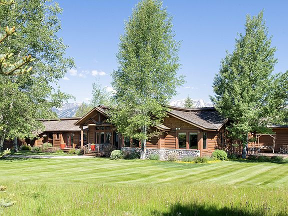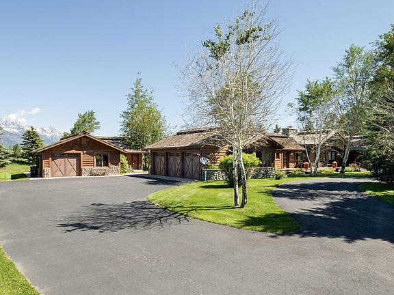 Grand Teton and Sleeping Indian views are the main focus throughout this newly remodeled, one level, mountain modern home. Large, eat-in gourmet kitchen with Gaggenau appliances, gigantic island and huge windows overlook the incredible water fall, pond and fire pit area. Living room w/ double-sided fireplace and wet bar is ideal for watching the elk migrate in the spring and fall as this property is adjacent to the migration corridor. Office, 3-en suite guest bedrooms, large master suite with a wood burning fireplace and access to the outdoors completes the main house. A charming 2bed/1bath guest house has a private deck and one car garage to house the overflow of family and friends that will be coming to visit.