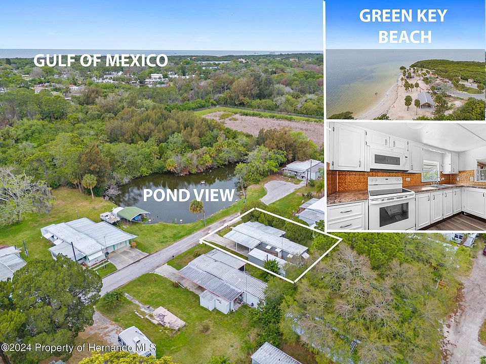 Remodeled and move-in ready with water views of the pond! 2 bedrooms + 1 bathrooms + carport + utility room + storage shed + fenced in backyard!! PLUS...located very close to the beach on the Gulf of Mexico on Green Key at Robert K Rees Memorial Park - enjoy your Florida sunsets there each night!!! On septic with new drain field and on public water through the City of New Port Richey. Kitchen offers a dining room area overlooking the great room! Cute, screened in and covered front porch to relax on while you look across at the water/pond! No neighbor across the street from you because of the pond being there...so a little adding privacy!! Nice sized carport! Remodeled bathroom with real wood cabinet and walk-in shower. New flooring throughout! Freshly painted. Lot is 100' deep by 52' wide. This home is move-in ready! Call today to see it!