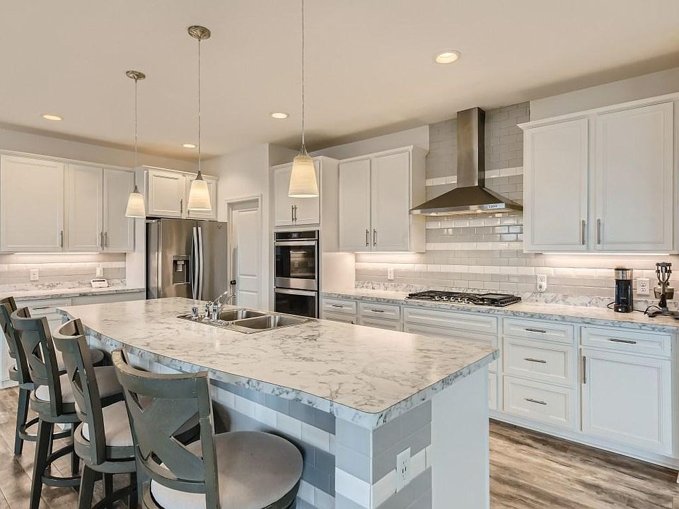 Glenburne plan on corner walkout lot with added 3 car garage floor plan. Large kitchen and center island