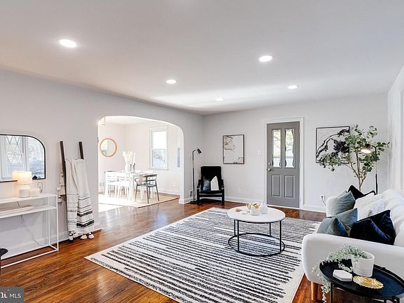 Welcome to this stunning Colonial in the highly sought-after Meadows community! This home exudes charm and warmth with quality touches throughout. Step inside to discover a spacious living room with gleaming hardwood floors that flow seamlessly across the main level. The dining area opens to an updated kitchen, complete with stainless steel appliances, quartz countertops, and a generously sized bar-top island with ample storage throughout. Upstairs, you’ll find three generously sized bedrooms and a stylishly updated full bathroom with a shower/tub combo. The fully finished basement expands the home’s living space, offering a fourth bedroom, a versatile entertainment area, a convenient half bathroom, and a laundry/utility area. Outdoors, enjoy a large deck that overlooks the backyard, perfect for gatherings, along with a charming side porch. Parking is a breeze with a wraparound concrete driveway, providing ample space for multiple vehicles. Don’t miss this opportunity to own a truly special home in a fantastic location! Living here you are close to all major commuter routes, Woodlawn Memorial Park just a short walk away and shopping and dining options surrounding. Schedule you tour today!