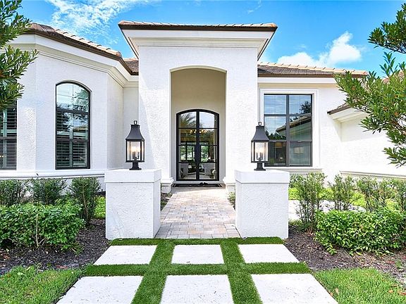 Just completed! Total renovation with the highest quality of materials, located in the Vineyards, with unbelievable west-facing views of the golf course. The exterior includes new hurricane windows and doors, newer tile roof, new landscaping with zoysia grass, new lighting, paver and grass driveway, renovated pool and spa, new screen picture window, new patio, putting green and a 500-gallon underground propane tank which is set up for a generator. The interior is completely redesigned with new flooring, remodeled baths with Toto plumbing fixtures, new interior doors with high-end door hardware, new millwork in every room, custom closets throughout, enlarged pantry and laundry room with two washers and two dryers, remodeled kitchen with Sub-Zero refrigerator, Wolf gas range, Sub-Zero drawers and a Sub-Zero bar refrigerator and two Bosch dishwashers. The home spans 3,800 square feet under air and 5,176 total square feet with a three-car garage. The primary oversized bedroom includes two primary baths, one with a steam shower and one oversized walk-in shower with two shower heads each with their own custom walk-in closet, four bedrooms with en suites, 5.5 baths plus large den with bay window and media room with new glass steel custom wall with French doors. The large great room includes a meticulously designed kitchen with large island and custom cabinetry, a wet bar, dining area facing the pool and outdoor area, and living area with custom built-in shelving and fireplace. Exquisitely designed for entertaining and everyday living, this home offers a seamless blend of luxury and functionality. The screened lanai features a newly surfaced pool and spa, an outdoor kitchen and two large seating area. Right outside of your pool deck is an additional seating area facing the golf course and your private putting green. The Vineyards is inland in a fabulous location close to everything Naples has to offer and has spent millions of dollars renovating the clubhouse and golf courses. The Vineyards has become one of the finest lifestyles in Naples with a wellness spa, fitness centers, lap pool, large recreation pool with restaurant and bar, pickleball, tennis and bocce ball courts, and two totally renovated championship golf courses, along with casual and fine dining options. This home is in the exclusive neighborhood of Arbor Glen, one of the nicest neighborhoods with only 44 estate homes in the Vineyards with cobblestone street and bridged entranceway, making this home a unique estate for the most discriminating buyer.