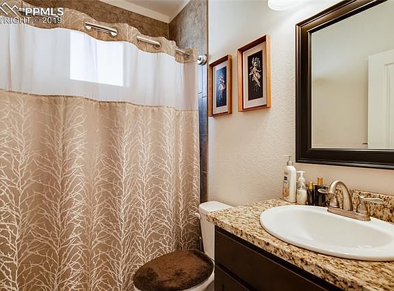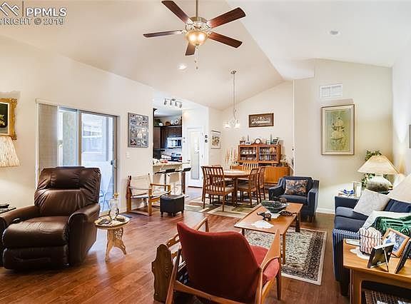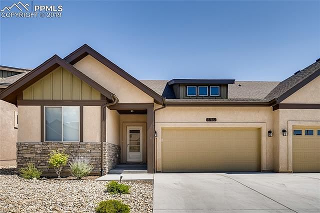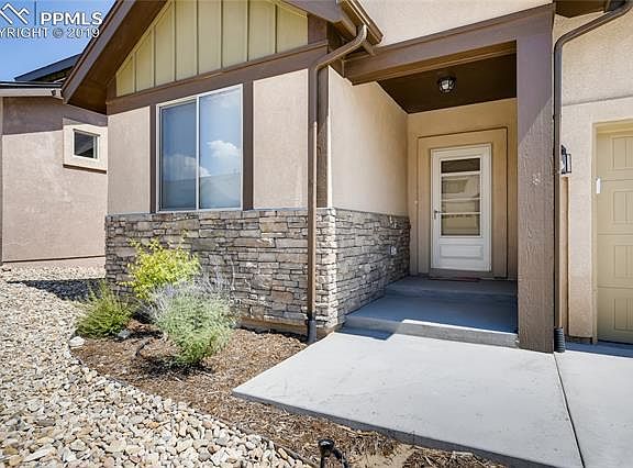 Nearly new and low maintenance! This beautiful home boasts open concept main level living w/ hardwood flooring, vaulted ceilings and fully finished basement. Main level features, office, shared full bath, living and dining with walk out to covered patio, spacious kitchen that boasts dark wood cabinetry, SS, granite and pantry. Master suite with vaulted ceiling 3/4 bath, double vanity and walk in closet. Finished basement features huge family/rec room with endless possibilities, two bedrooms and shared full bath. Don't have to wait for new! This home is beautiful and move in ready. Enjoy low maintenance living in this home. Located close to parks, schools, shopping and entertainment. Easy access to Powers blvd or Marksheffel Rd for quick commute. A must see!