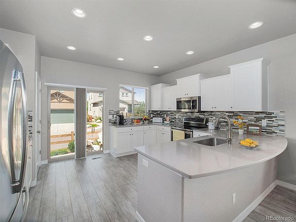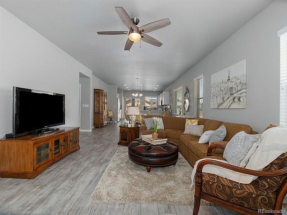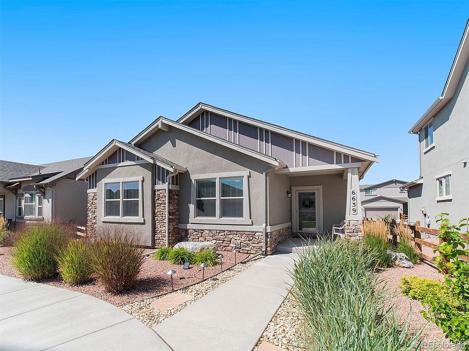 Welcome Home to this immaculate ranch home. Pride of ownership truly shows through! 2 bedrooms, 1 office, laundry on main, 2 car attached garage, no stairs! When you walk in, you will immediately notice the high ceilings, large windows and the easy flow through the dining area and into the kitchen. There is a large window in the dining area to let in natural light and plenty of room to open up your dining table for large dinners. The kitchen offers a breakfast bar to pull up a chair and enjoy a morning cup of coffee or afternoon snack. The kitchen is a joy to spend time in with stainless steel appliances, soft close, white maple cabinets and Corian counters. There is a planning area or coffee bar next to the large pantry, and you can walk out to the back patio to relax and enjoy your favorite beverage. Off to the side of the living room is a bonus room with French doors. A great spot if you work from home or a studio for your favorite hobby. The master bedroom is spacious and includes a walk-in closet, a private bath with double sinks, an oversized shower, and a heat lamp for chilly mornings. The secondary bedroom is next to the main bathroom. The laundry room has cabinet space above the included washer and dryer and space for your cleaning appliances and supplies. The covered front porch is great for visiting neighbors who share a community front yard, with a sidewalk around the perimeter. The 2 car attached garage does have extra room. Enjoy the extra time you have with no yard work! This home does include central air and a humidifier and 2 water heaters. Located close to shopping and dining and just a short drive to the local schools and Powers Corridor.