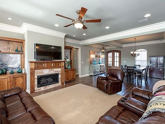 Wonderful 4 bedrooms/3 bath house for entertaining with the open floor plan which includes a formal dining, living and a Hearthroom! Beautiful new wood-look tile floors throughout with carpet in the 3 guest bedrooms, brick accent wall in the living areas, tall ceilings and neutral colors. All lighting converted to LED. The large remote master suite is 1 of 3 access points to the back patio. The amazing 400sqft outdoor kitchen, which was added on in 2016, completes the large backyard perfectly and makes entertaining easy.