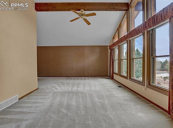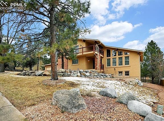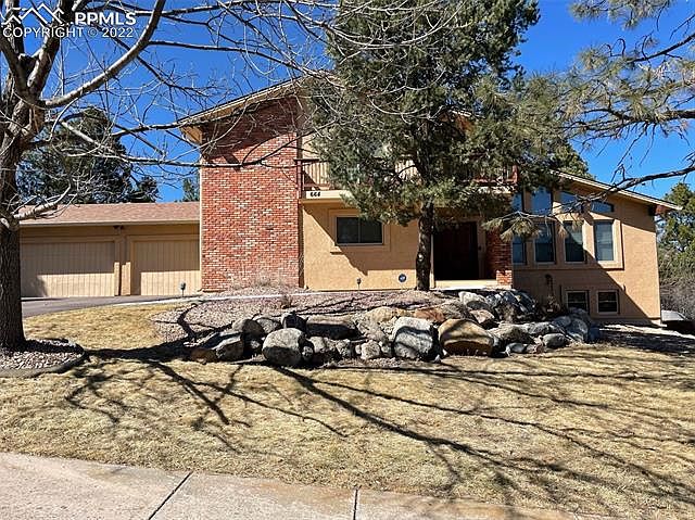 Stunning 2-story in Broadmoor Bluffs Park! Quiet cul-de-sac street with views of the Mountains and the City. A large living room/dining room combo with soaring ceilings greets you at the front door. Plenty of room for your guests! The updated kitchen has new granite counters and stainless upgraded appliances and lots of workspace. A large breakfast nook combines with a warm cozy family room with a brick fireplace, plus a walkout to the beautiful covered deck. The Main level also includes an office, a 4th bedroom, and a full bath. The Laundry is also on the Main! Upstairs includes 2 more bedrooms, 1 bath and a South-facing covered deck to enjoy the warm Colorado sun. The Master Suite has a cedar-lined walk-in closet, with extra storage. The master bath is your pampered retreat, with an oversized shower, dual vanity, and a jetted tub. Walk out the Master to your private balcony overlooking the city. The large finished basement has a walkout to your large private backyard with mature trees. Don't forget the finished, oversized 3-car garage! This home has it all!