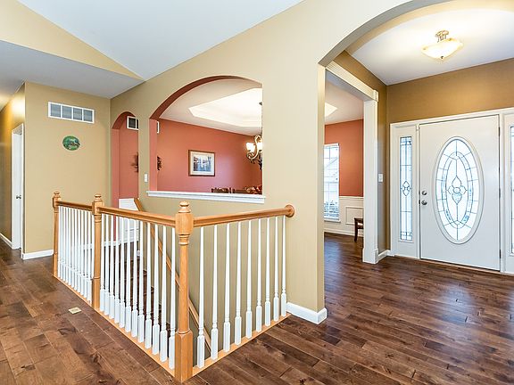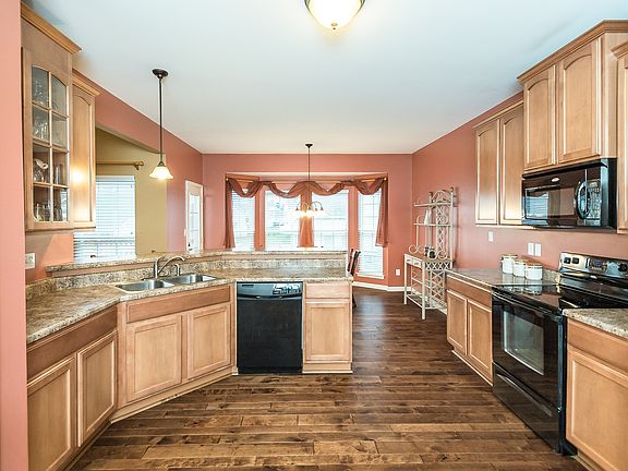 DESIRABLE STONE MEADOWS SUBDIVISION. WHAT A BEAUTIFUL HOME AT A GREAT PRICE! OVER 3400 SQ.FT. OF LIVING SPACE...GORGEOUS NEW HARDWOOD FLOORS THROUGHOUT MAIN FLOOR AND ALL BATHROOMS WITH NEW TILE. CURRENTLY 4TH BDRM ON THE MAIN FLOOR IS USED AS AN OFFICE. 9 FT CEILINGS THROUGHOUT MAIN FLOOR, VAULTED CEILING IN GREATROOM. COFFERED CEILING IN MASTER SUITE, DESIGNER CEILING IN FORMAL DINING ROOM, DREAM KITCHEN WITH UPGRADED 42IN MAPLE CABINETS, SOME GLASS FRONTS, LARGE BREAKFAST BAR, PANTRY IN THE LARGE LAUNDRY ROOM. BAY IN BREAKFAST ROOM WITH DOOR TO PRIVATE DECK! MASTER SUITE WITH LARGE BAY WINDOW, LUXURY BATH WITH HIS AND HER VANITIES, SEPARATE TUB AND SHOWER AND LARGE WALK-IN CLOSET. THE PARTIALLY FINISHED WALK-OUT LOWER LEVEL HAS A 9FT POUR, REC/ROOM FAMILY ROOM , FULL BATHROOM and SLIDER TO PATIO...POTENTIAL TO MAKE ANOTHER BDRM IN ALREADY FINISHED WALKOUT LOWER LEVEL. LOT IS NICELY LANDSCAPED AND OFFERS IN-GROUND SPRINKLER SYSTEM. FULL BRICK/STONE FRONT AND A 3 CAR GARAGE. ALL FRESHLY PAINTED IN A NEIGHBORHOOD WITH GREAT AMENITIES INCLUDING SEVERAL POOLS, WALKING TRAILS, BALL DIAMONDS AND SO MUCH MORE!!