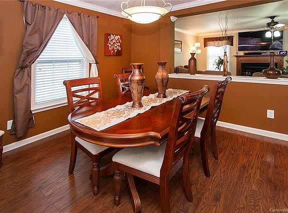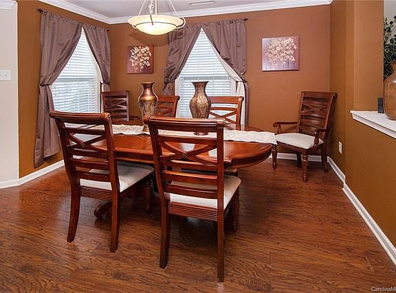 This open concept home is showroom ready with lots of curbside appeal. Crown moldings throughout home with laminate wood floors (except in master bedroom which has carpet and bathroom's have linoleum). Open kitchen overlooks great room with gas log fireplace and has beautiful kitchen cabinets that match the laminate wood floors, back splash, double oven gas range, microwave and refrigerator. Laundry room has shelving. Master bedroom has vaulted ceiling, walk-in closet and adjoining master bath with garden tub, standing shower, extended vanity space for makeup chair. Large private fenced yard with over sized patio boasts a Pergola decorated with lights for nightly entertaining. Attic has pull down stairs with flooring for additional storage space. This home is beautifully decorated and will not last in this much desired neighborhood.