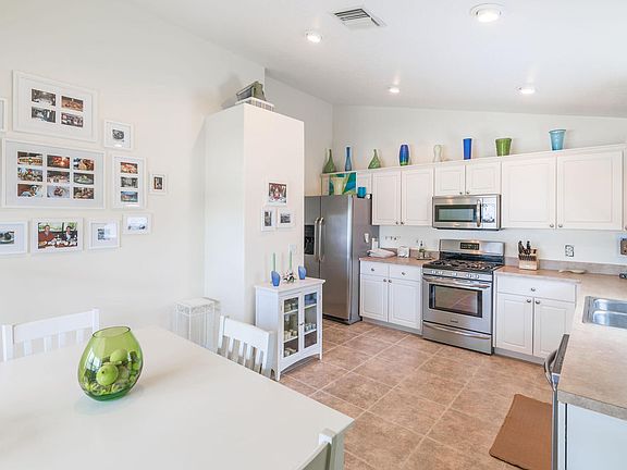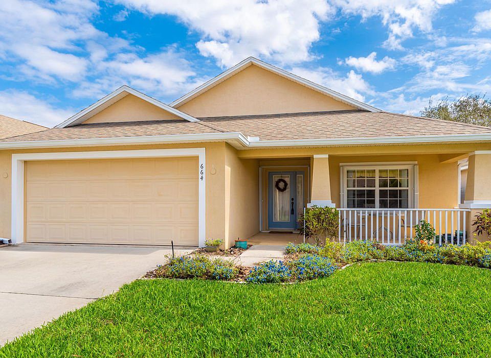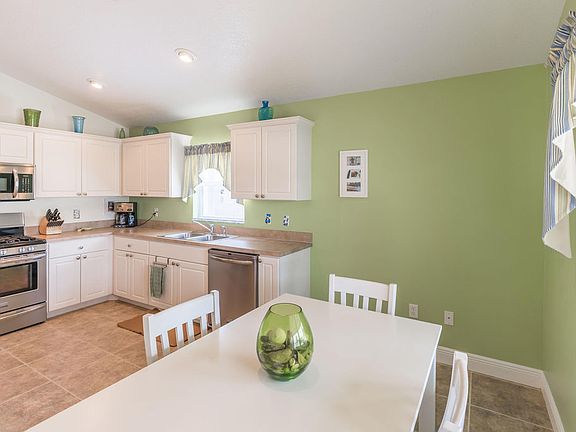 Beautiful home built by award winning local builder. Wonderful front porch greets you as you walk up to the glass front door. High vaulted ceilings and tile floors opens up to a grand living and dining room. Kitchen boasts all stainless steel appliances with gas stove! Water heater, Furnace & dryer are all gas! Sweet kitchen nook has front window with loads of natural light. Large master bedroom tiled floors,walk in closet, soaking tub, walk-in tiled shower and dual sink vanity. Upgraded remote controlled ceiling fans throughout. Decorated custom draperies and blinds grace the windows throughout. Fully equipped with recently installed Hurricane accordion shutters. Lots to do in this wonderful community and conveniently located to Golf course,Beaches,Shops and Dining!