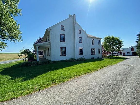 2 unit farmhouse. This is the larger of the 2 units with 4 bedrooms and a full bathroom. Main level features eat-in kitchen w/ refrigerator & stove, dining room, and living room. Upper level has 4 bedrooms and a full bathroom. Full basement with washer & dryer hookups. 2 car detached garage included. Landlord is responsible for lawn maintenance. Tenant is responsible for all other utilities including electric, propane heat, trash, and cable. ** To set up a showing please click on the link below and fill out the pre-showing application. Lawn maintenance included.