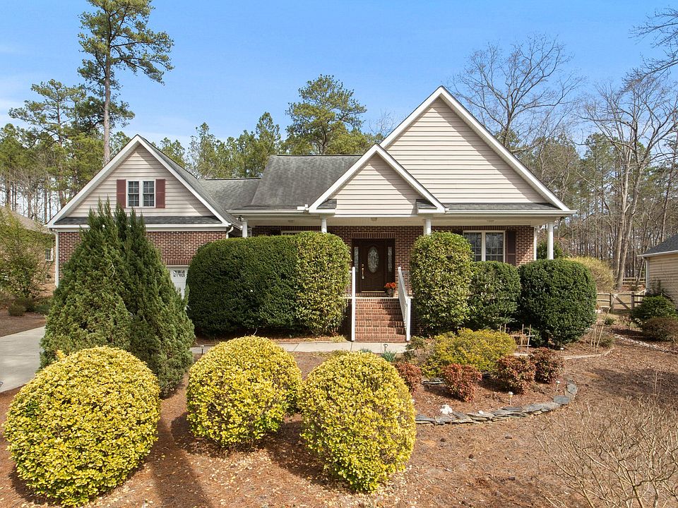 Lovely ranch home located in the exclusive gated community, Carolina Trace, in Sanford, North Carolina. World-class amenities include a beautiful lake for canoeing or fishing, pool, tennis and a stunning golf course. (Some amenities are fee based). Home is designed primarily for one-level living. Beautiful tray ceilings in the dining room and primary bedroom. Crown molding and hardwood floors. Owner added a large enclosed porch with tile floors and separate heating that is light and cheery, you will want to spend hours there. Kitchen is well equipped with plenty of counter space and cabinets. Family room has a propane gas fireplace (propane tank is underground). Primary bedroom is very spacious with a spa inspired bath. Lot is beautifully landscaped. You will appreciate the oversized garage with room for storage. Carolina Trace community is well situated near shopping and major highway routes.