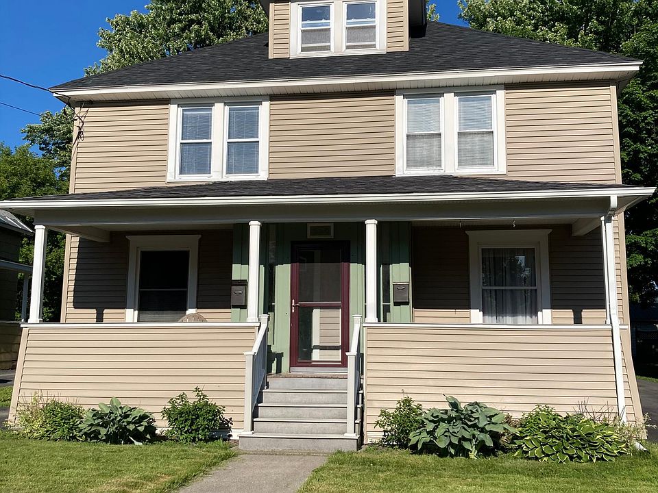 Three bedroom, one bath 1700 square foot half house apartment for rent centrally located in Watertown in quiet residential area. Near Fort Drum and Samaritan Medical Center. $1200 per month plus low utilities. First month rent and one month security deposit required. No pets, no smoking. Snow removal included. Eat in kitchen, dining room, living room, enclosed back deck overlooking large yard. Large closets. Beautiful woodwork throughout. One year lease. One month security deposit and first month's rent required. No pets, no smoking. Utilities are not included. Snow removal is included. Off street parking.