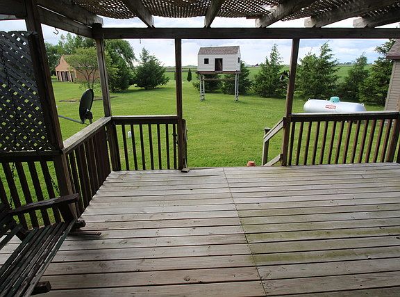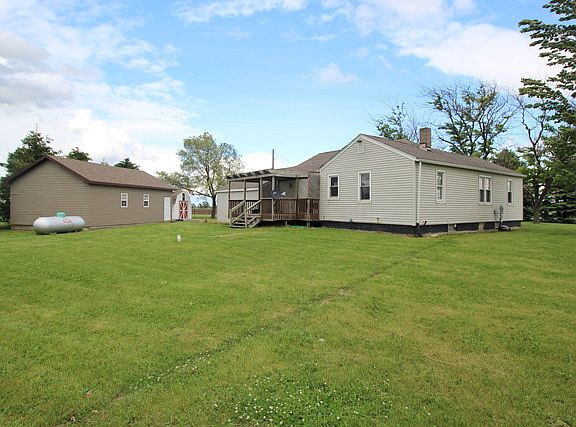 One story home on an acre of land. Easy interstate access; 1/4 mi from Gilman. Roof new 2 years ago, new 95% efficient furnace. Front and rear decks. Garage and storage shed have water and electric. Lots of nice, young trees.