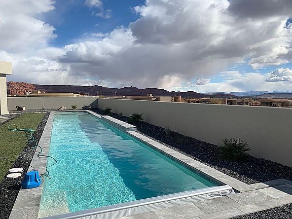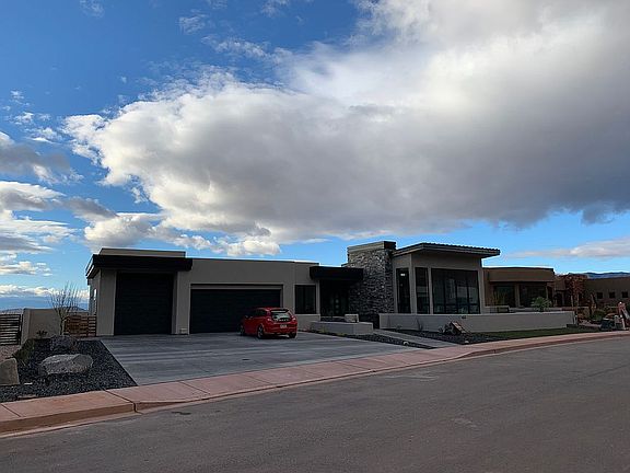 Architecturally stunning newer construction in the luxury gated community of The Palisades at Snow Canyon. This one-of-a-kind custom home built by Desert Sky Homes was designed with a keen attention to detail and spa-like luxury. Positioned on a premier lot, the home boasts an exceptional floor plan that captures the dramatic 360 degree views. From the gourmet kitchen and 12' wall of windows in the great room, you'll see gorgeous red rock canyons, Chancel Cliffs and Pine Valley. From the bedrooms, foyer and back yard, you'll be treated to views of the desert mesas and Utah Hill and, in the evening, the city lights of St. George and Santa Clara. This beautiful home offers 3,064 ft., built on a 0.39 lot, 3 bedrooms, 3.5 baths, and 3 car garage including an oversized Sprinter van garage with epoxy floors and built-in cabinetry. Your private backyard oasis features a beautiful 69' lap pool with large spa, water features, gas fire pit, putting green and artful landscaping. The property is equipped with a solar panel pool heating system to help stretch your pool enjoyment to nearly year-round. You won't want to miss this incredible opportunity to live in one of the most exclusive neighborhoods surrounded by Snow Canyon State Park, the Red Desert Reserve and Tuacahn Amphitheater. This is absolutely a must-see property in desirable Ivins City.