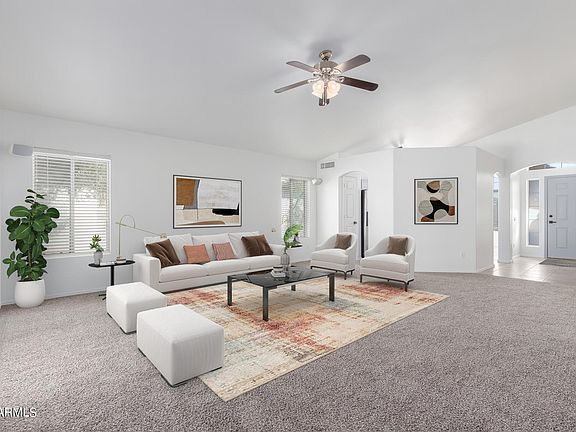Nestled in the heart of Central Chandler, this immaculate and well-maintained 3-bedroom, 2-bathroom residence exudes pride of ownership. Upon entering, you're greeted by a flawlessly clean kitchen adorned with newly painted cabinets and resurfaced countertops, boasting both a breakfast bar and a dedicated space for your morning table. Beyond the kitchen, the spacious family room beckons, promising ample room for entertainment and movie nights with an expanse of wall space suitable for any television. Abundant natural light bathes every room, and the primary bedroom enjoys seclusion from the secondary bedrooms. A convenient inside laundry room with direct access to the garage completes the thoughtfully designed layout. Security doors reinforce safety on both fronts, while a fully replaced HVAC system ensures comfort year-round. With fresh carpet and paint throughout, this home is unequivocally move-in ready. The large, low-maintenance backyard stands as a canvas for your personal vision, whether it be a pool, a verdant lawn, or an outdoor entertaining haven. Conveniently positioned, this property offers swift access to Downtown Chandler, Downtown Gilbert, and the 60, 202, and 101 freeways. Moreover, it's within walking distance of the neighborhood park and the vibrant Espee Park, courtesy of the City of Chandler, featuring a water park, ball fields, a skate park, and scenic walking paths.