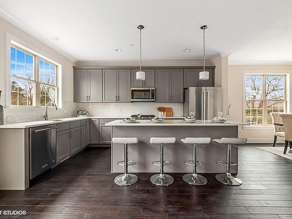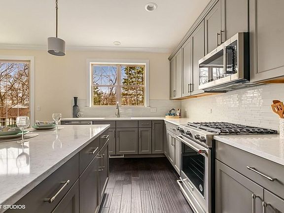Each townhome includes a 2-car attached garage and energy-efficient heating and cooling. Highlights include taupe-stained oak floors, upgraded bedroom carpet, white cabinets, quartz kitchen counters, Kitchenaid SS appliances, double-bowl quartz vanity tops, private deck, and bedroom ceiling fans. Pets welcome, limit 1 cat/dog.