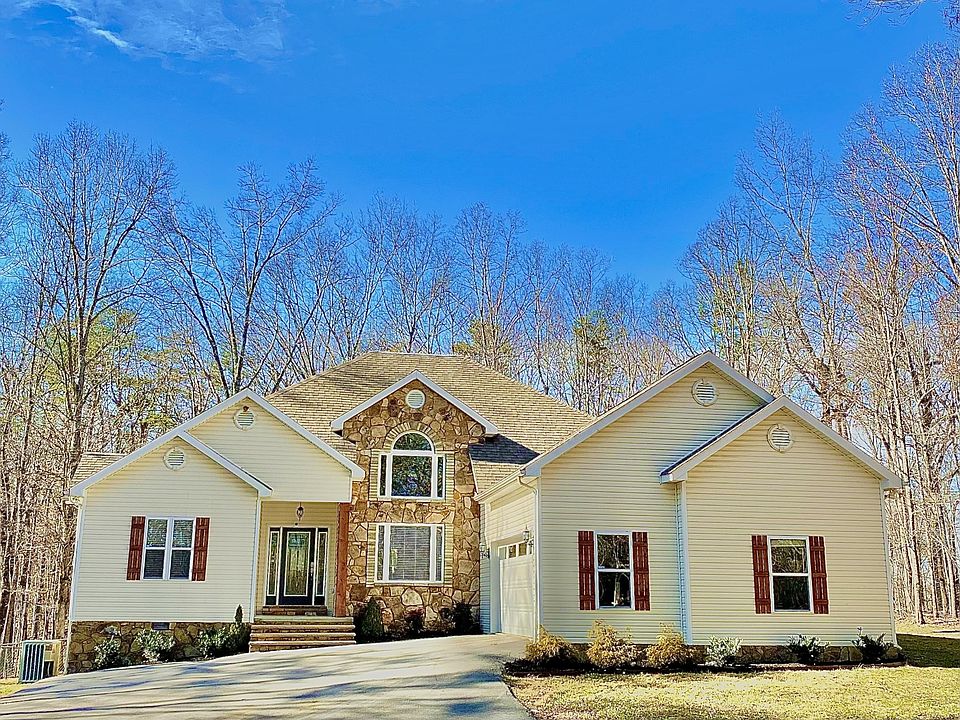 Beautiful Home on 7.6 Wooded acres. Sits high up with a paved drive. 3 bedrooms , 2 bath, Living room has vaulted ceilings and a stone fireplace. New wood flooring, tile in Baths, Kitchen & Laundry. Privacy galore, large back deck for entertaining. Generac Generator system. Call today!
