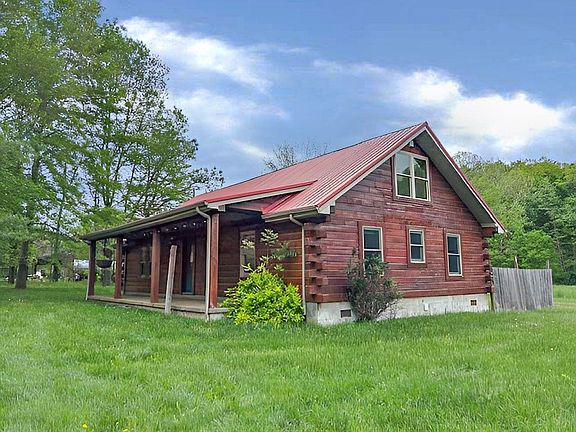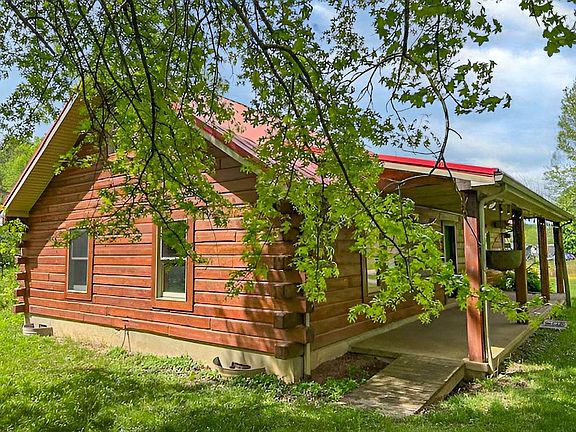 Beautiful log home sitting on 2.38 level acres in rural setting. Covered front porch and covered rear deck. Detached garage. Open concept, 2 bedrooms on main level, bedroom and bath on upper level with landing overlooking the spacious great room.