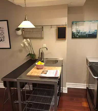 Stylish Junior 1 bedroom ( 425 sq ft ) located in the highly sought after central Annex district, close to subway, U of T and Bloor Yorkville shopping establishment.Ideally suited for clean working SINGLE professional seeking central location. Apartment is located in lower level of three story boutique style Annex property featuring executive apartments. Unit features: over 8 foot ceiling with LED lighting, modern kitchen with kitchen island, stainless steel appliances ( dishwasher , stove, fridge and microwave) , hardwood flooring , updated bathroom, bedroom with three doors standalone wardrobe ,Central heating and A/ C, .Laundry on the same floor - shared with one resident( fee ).Rent is inclusive of hydro, water, central heating and A/ C, garbage portage, snow removal.EXYRA: Hard and soft window covering provided for 2 windows, 2 bar stools for kitchen island,3 door wardrobe included , wall mirror and coat rack, kitchen accessories..Regrets NO PETS ,smoking / vaping.- serious allergy.Parking available upon request- extra .Unit is available for immediate occupancy ,April 15 or May 1st. Flexible move- in date can be arranged.